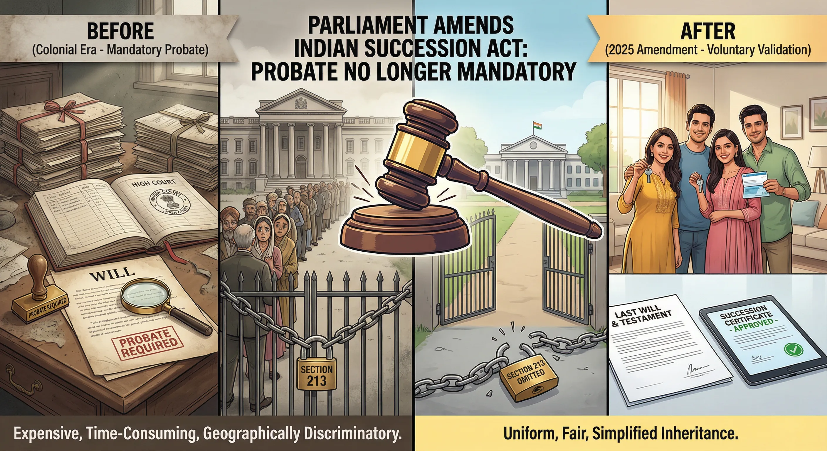 Parliament Amends Indian Succession Act, 1925: The amendments remove colonial-era provisions that made inheritance through Wills expensive, time-consuming, and geographically discriminatory, bringing uniformity and fairness to succession law nationwide.